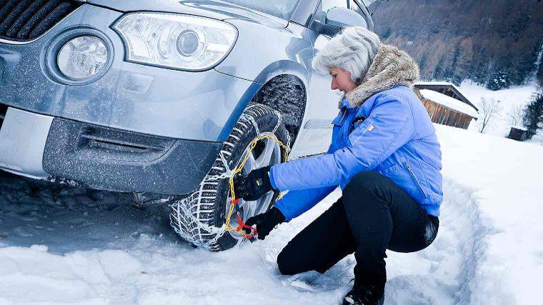 Een sneeuwketting is een hulpmiddel dat wordt aangebracht om de banden van de auto om betere grip te krijgen op de benseeuwde ondergrond.